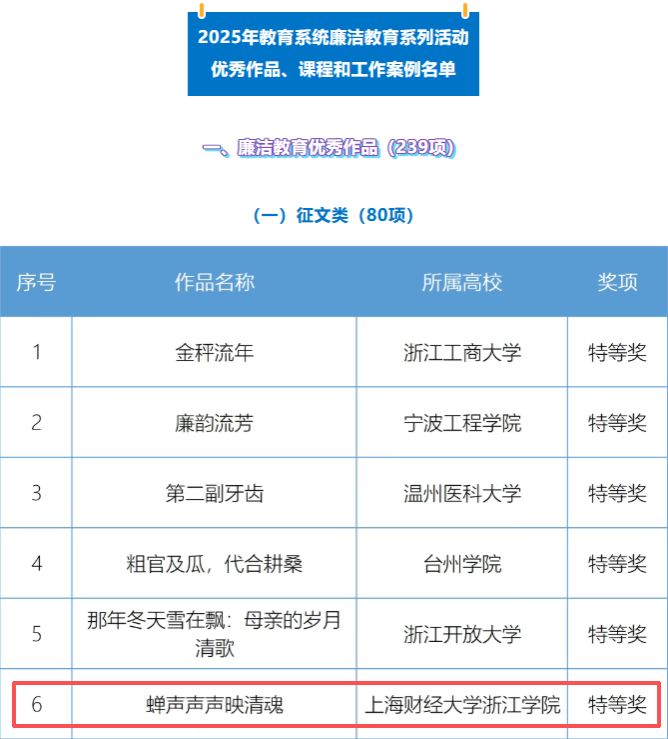 11月11日,随着2025年教育系统廉洁系列活动优秀作品、课程和工作案例名单正式公布,本年度全省教育系统廉洁教育系列活动优秀作品评选活动已圆满结束,我院在本次活动再创佳绩,共获特等奖1项,二等奖1项,三等奖2项,成绩居全省独立亚博取款快速到账,华体会网页版登录入口,ob视讯体育官网首位。